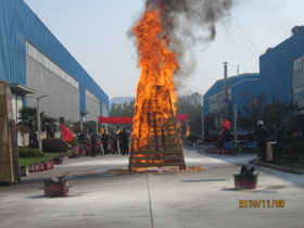 发布日期:: 2010-11-152010年11月9日高速公司分别在公司258亩生产基地和400亩风电产业园进行了消防疏散演习及实战灭火演习。高速公司副总经理周志谨先生担任了本次演习的总指挥,公司全体员工(包括外来访客、设备安装人员、设备维修、保洁、油漆等外包人员,产品监制人员等)积极热情地参与了本次演习。