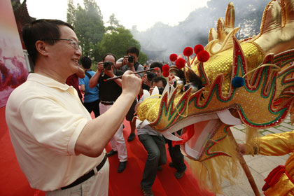 (董事长胡曰明先生为龙舟赛开目点睛、鸣枪发令)