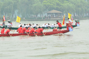集团公司董事长兼总经理胡曰明先生宣布龙舟赛开幕,并为龙舟比赛“开目点睛”。随着他扣动发令枪,龙舟赛正式开始,在激扬的锣鼓声中,39支龙舟劈波斩浪、奋勇争先。经过10组初赛与4组决赛,冠军最终由镇江同舟螺旋桨有限公司代表队获得;获得二等奖的队伍是高速公司三分厂代表队、高精公司五分厂代表队和高精公司七分厂代表队;获得三等奖的队伍是宁凯公司焊接分厂代表队、奥能锅炉代表队、高速公司热处理代表队、高特公司精加工分厂代表队、宁宏建公司代表队与宁嘉机电有限公司代表队;宁凯公司机加工分厂代表队、高速公司一分厂代表队和高精公司六分厂代表队获得本届龙舟赛“特别奖”。